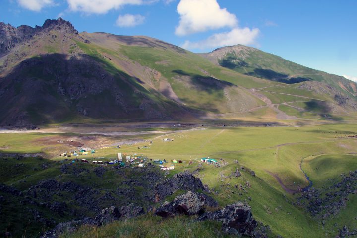 2. dan: transport terenskim vozilom do Baznog kampa 2560 m na visoravni Emanuel u trajanju 3-4 sata. Smeštaj u Bazni kamp, a nakong toga početna aklimatizacija, pešačenje do banjskog lokaliteta Dzhila-Su i vodopada Sultan visine 40 m. Noćenje u Baznkom kampu. Pešačenje uređenom planinarskom stazom, po travnatim padinama.