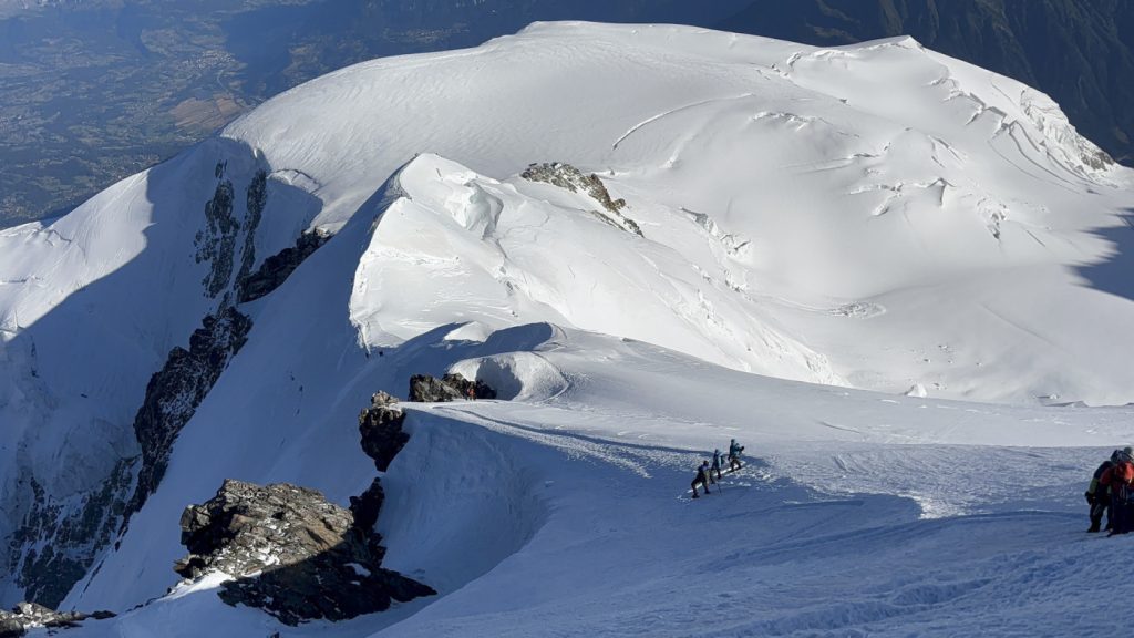 IV dan (15.07.): završi uspon na vrh. Ustajanje i polazak na vrh u 01h. Uspon započinjemo stenovitom stazom do dolaska na glečer Dome. Zatim sledi uspon na greben Piton des Italiens 4003 m. Nakon toga sledi spajanje sa stazom sa francuske strane i završni uspon grebenom Bose do vrha. Zadržavanje na vrhu za odmor i fotografisanje, a potom povratak istom stazom do doma. Noćenje u domu.